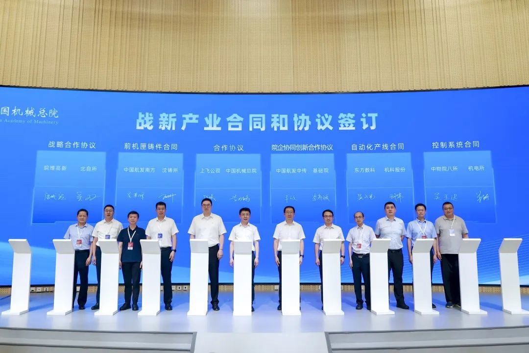 會上,中國機械總院集團及所屬公司沈鑄所、北自所、機電所、機科股份、基礎院、海西分院、寧波機床院、云南院等單位分別與中國商飛上飛公司、皖維高新、中國航發南方、中國航發中傳、東方數科、中物院八所、萬向錢潮、科德數控、云南錦潤、福州市晉安區政府、重慶兩江新區等12家企業和地方政府簽署戰新產業合同及協議。