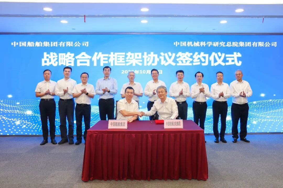 10月17日,中國機械總院與中船集團在上海簽署戰略合作協議。集團黨委書記、董事長王德成,中船集團黨組書記、董事長徐鵬共同見證簽約,集團副總經理姜超、中船集團副總經理彭原璞代表雙方簽署協議。