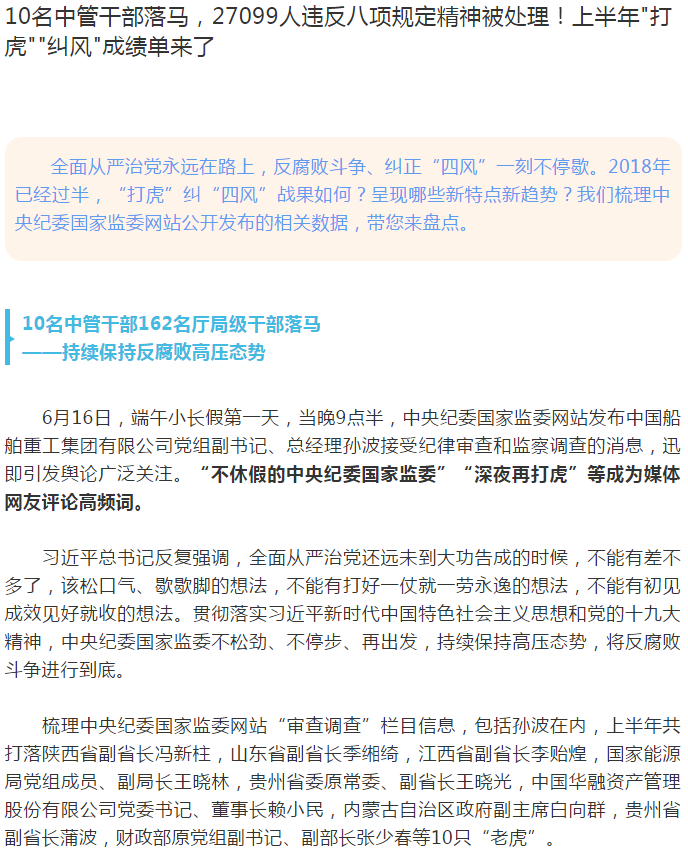 10名中管干部落馬,27099人違反八項規定精神被處理!上半年"打虎""糾風"成績單來了